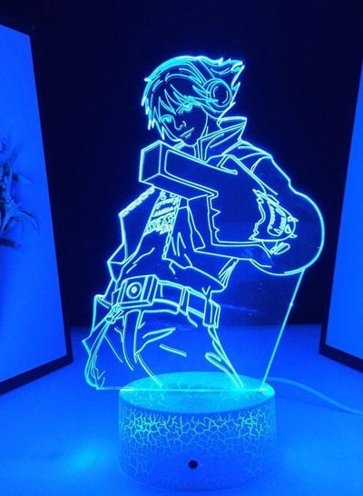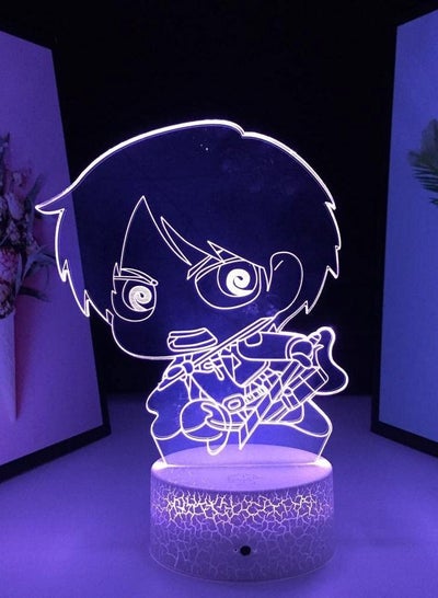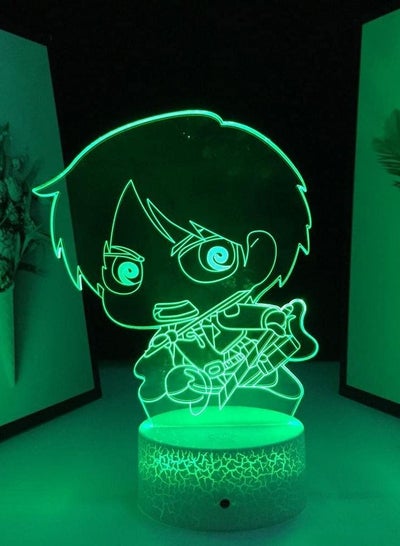 مصباح طاولة وهمي ثلاثي الأبعاد Led بقاعدة إضاءة ليلية Eren Yeager Anime Illustration هدية عيد ميلاد ديكور غرفة نوم لغرفة الأطفال