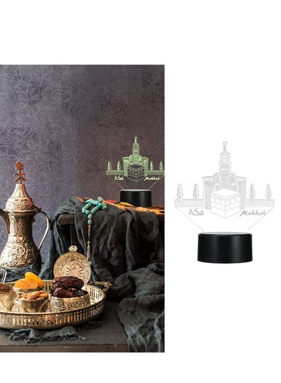 مصباح طاولة رمضاني ثلاثي الأبعاد لعيد مبارك ومصباح مكتبي لتزيين الحفلات بقاعدة سوداء