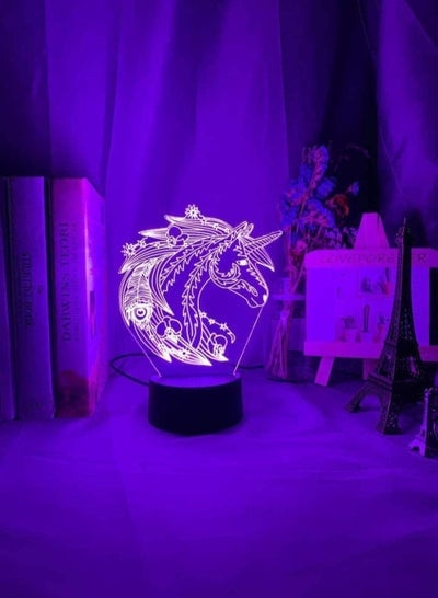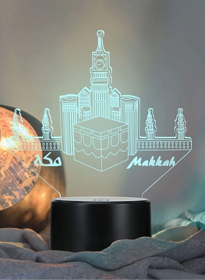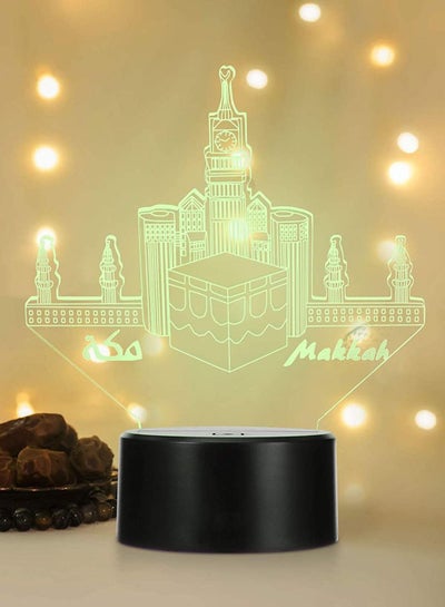 مصباح طاولة متعدد الألوان ثلاثي الأبعاد لرمضان لعيد مبارك ومصباح مكتبي لتزيين الحفلات بقاعدة سوداء