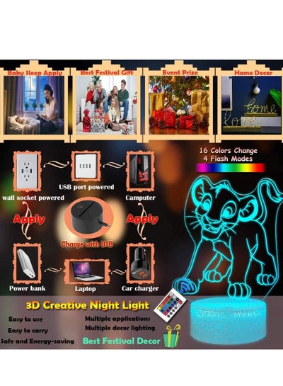 هدايا مصباح أكريليك ثلاثية الأبعاد على شكل أسد، أضواء ليلية ثلاثية الأبعاد USB LED مصباح طاولة منزلي ثلاثي الأبعاد هدايا عيد ميلاد للأب والرئيس والرجال - 7 ألوان متغيرة لهدايا ديكور غرفة النومDhs. 53.04Dhs. 55.00