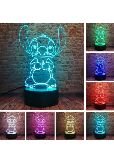 أضواء ليلية متعددة الألوان للأطفال أنمي حيوانات ليلو وستيتش ثلاثية الأبعاد 6 ألوان مع جهاز تحكم عن بعد