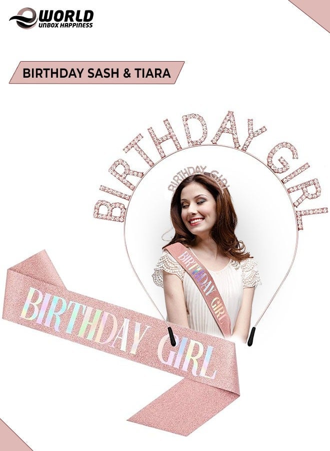 Eworld Rose Gold Birthday Crown and Sash Set for Girls, Princess Rhinestone Tiara and Glitter Birthday Girl Headband, Perfect Birthday Gifts and Accessories for WomenDhs. 22.00Dhs. 29.95