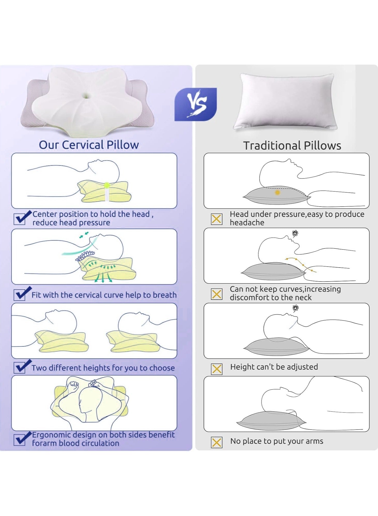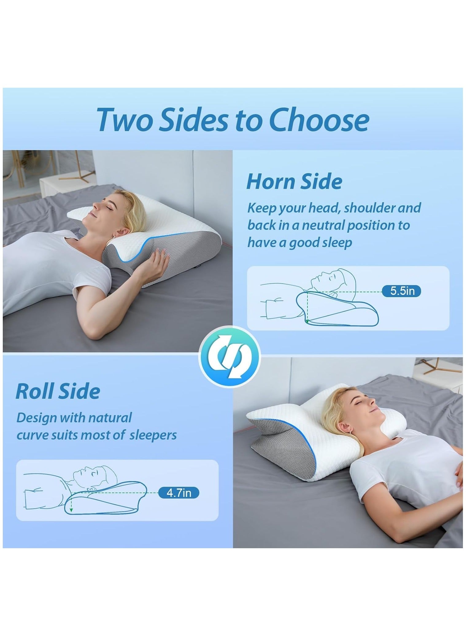 2-in-1 Memory Foam Cervical Pillow, Orthopedic Contour Pillow for Neck Pain Relief, Ergonomic Support for Side, Back, and Stomach SleepersDhs. 54.00Dhs. 140.00