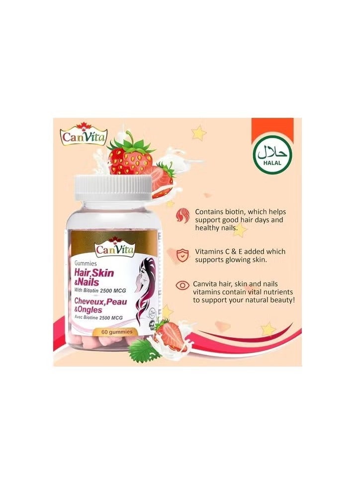 Hair, Skin and Nails Canvita Gummies 60's With 2500mcg of Biotin Delicious Vegan Gummy Tablets (Halal)Dhs. 98.00