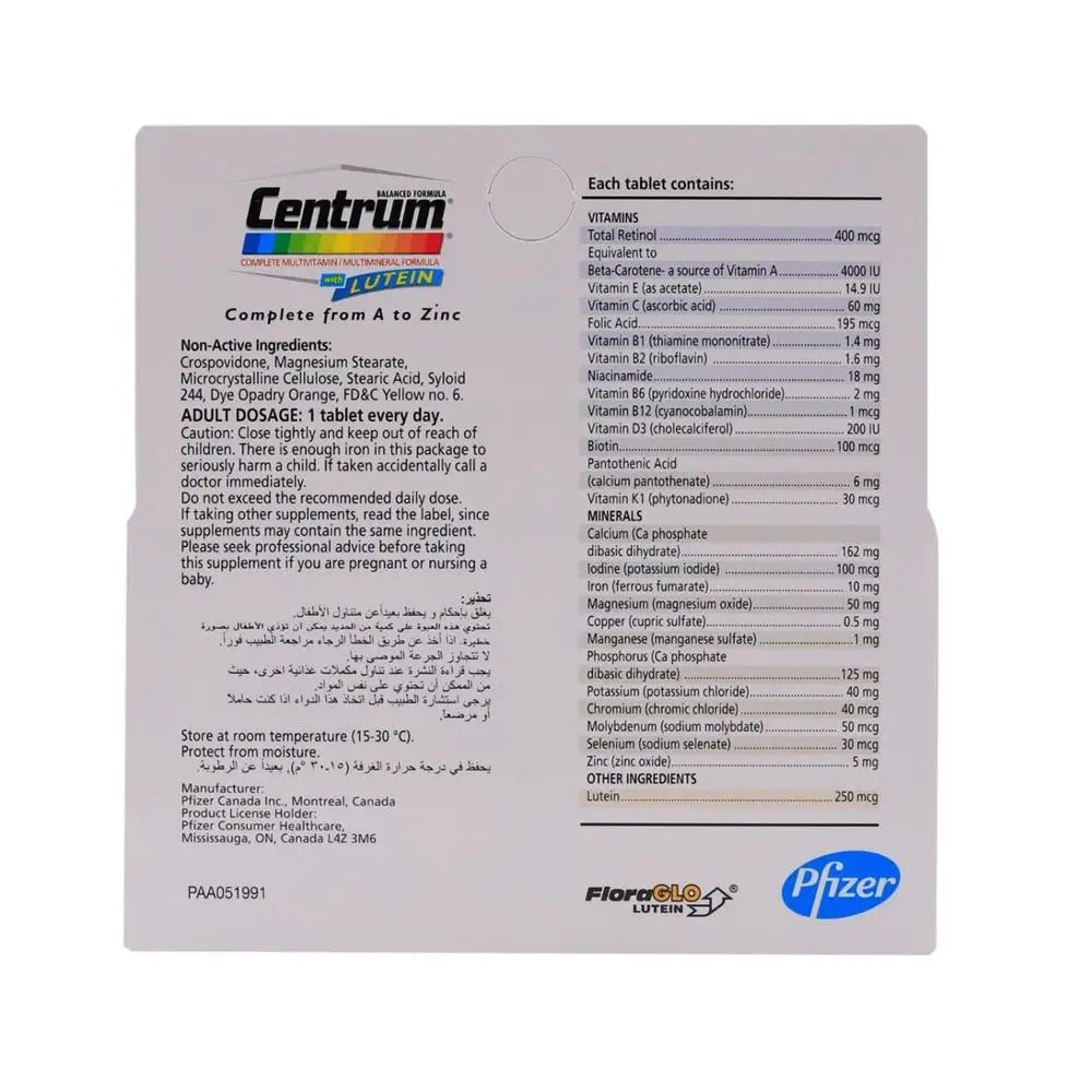 Centrum Silver With Lutein, 100 Tablets, Specially formulated for Adults 50+Dhs. 185.00