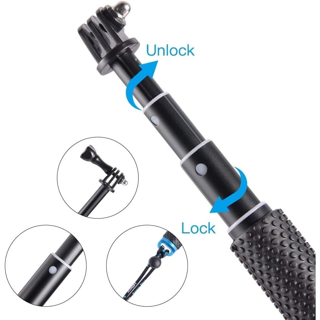Selfie Stick 19” Waterproof Hand Grip Adjustable Extension Monopod Pole Compatible With GoPro Hero 9 8 7 6 5 4 3+ 3 2 1 SessionDhs. 49.90