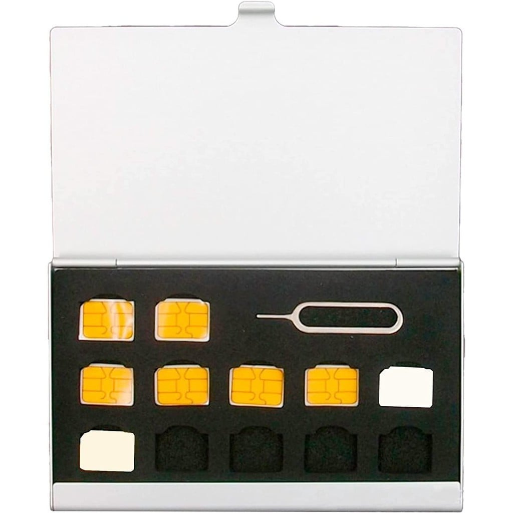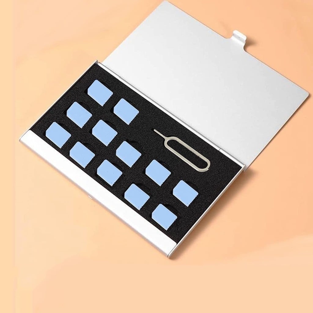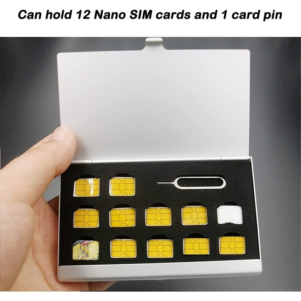 Aluminum SIM Card Case Fit For 12 Nano SIM Card And 1 Cell Phone Eject Pin Slots Universal Waterproof Slim Mini SIM Card Slots Storage Case (Silver)Dhs. 33.00