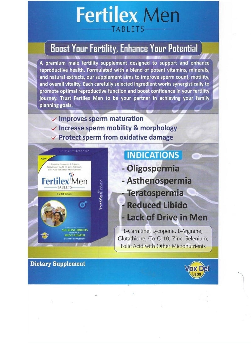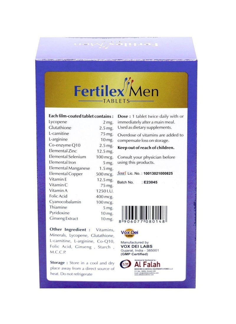 Fertilex Men Tablets - 60 Tablets | Enriched with L-Carnitine, Lycopene, L-Arginine, Glutathione, CoQ10, Zinc, Selenium, Folic Acid & MicronutrientsDhs. 113.00Dhs. 120.00