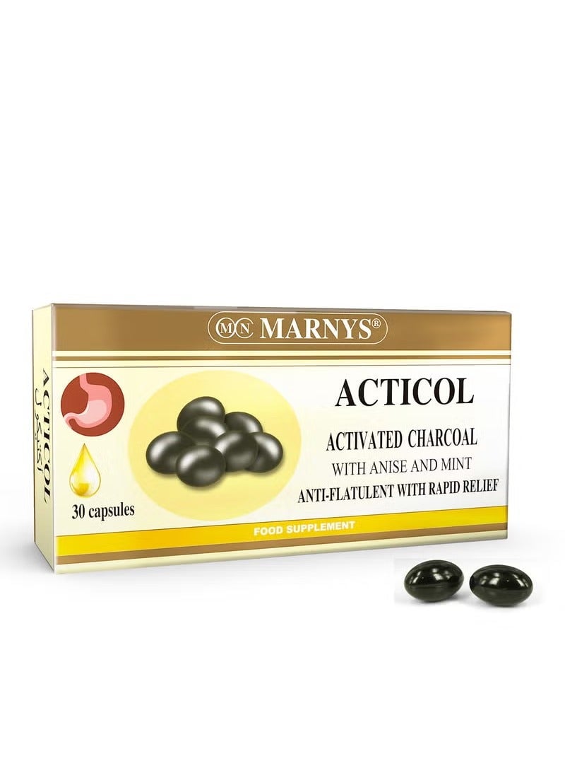 Marnys Acticol - Activated Charcoal with Mint & Anise - Natural Digestive Relief - Bloating & Gas Reduction - 30 CapsulesDhs. 37.50Dhs. 39.50
