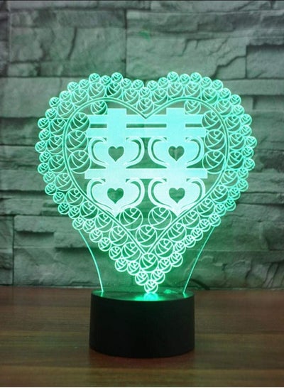 أضواء ليلية متعددة الألوان 7/16 لونًا متغيرة ثلاثية الأبعاد USB لإضاءة النوم على شكل قلب مصباح طاولة مزدوج السعادة لغرفة الزفاف الصينية هدية إضاءة ليلية متعددة الألوانDhs. 53.04Dhs. 55.00