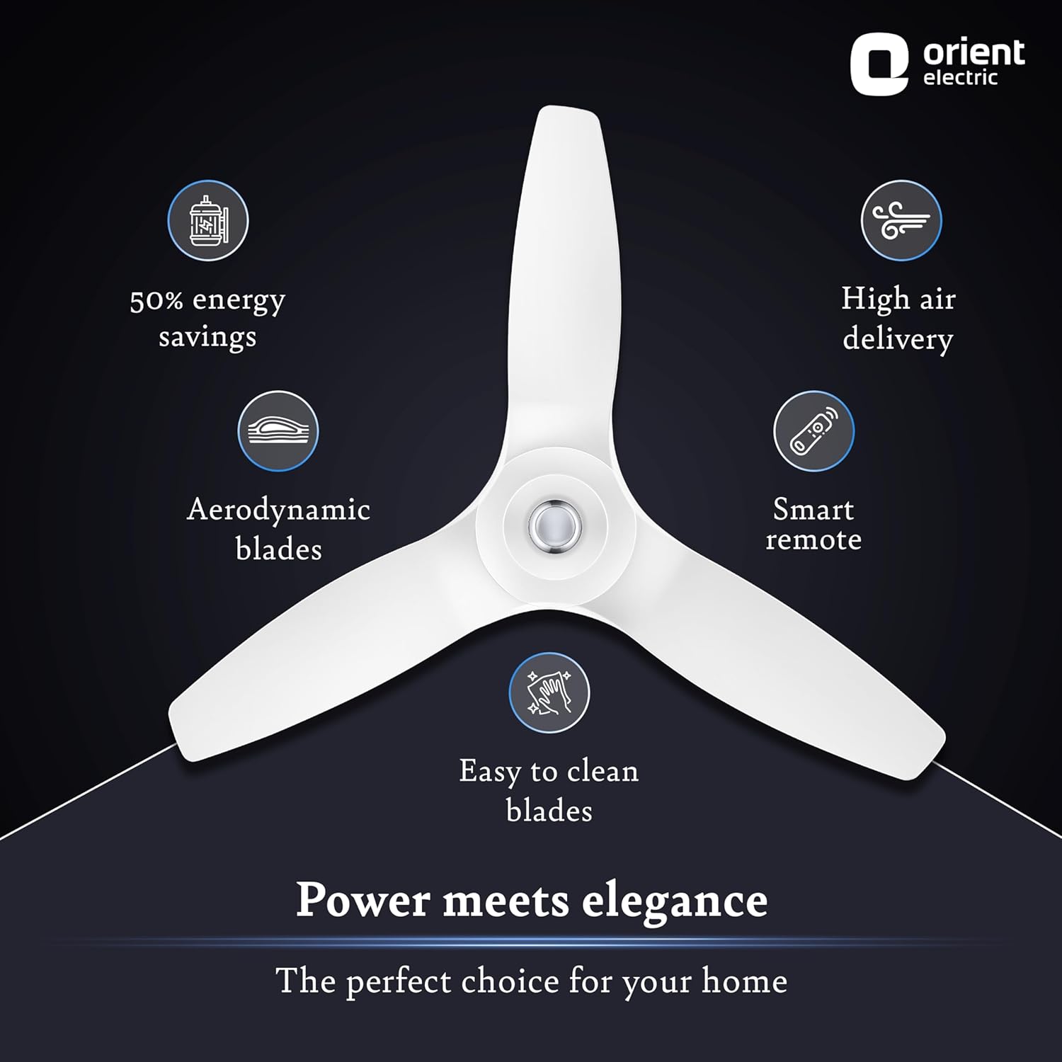 مروحة سقف Orient Electric Aeroquiet BLDC مع جهاز تحكم عن بعد (أبيض، قطر المروحة 1200 مم)Dhs. 440.00