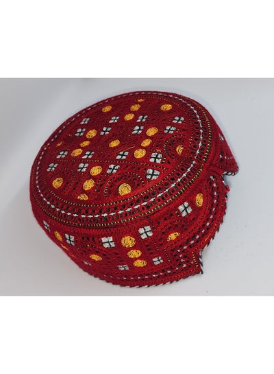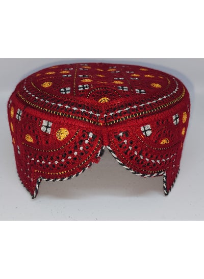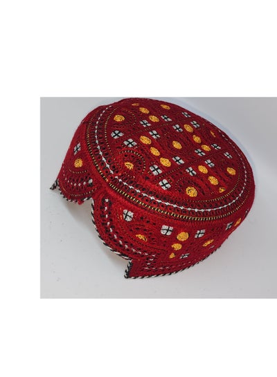 تُعرف قبعة السندي التقليدية باسم التطريز المنسوج يدويًا من قبل السندي الكوفي في باكستان، وهي جزء أساسي من ثقافة الساريكي والبلوتشي باللون الأحمر مع الفضة والذهب.Dhs. 61.73Dhs. 70.00