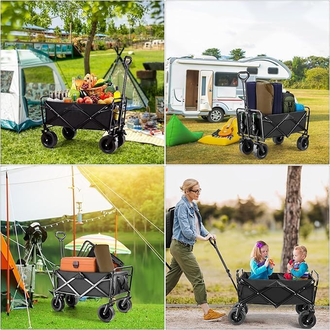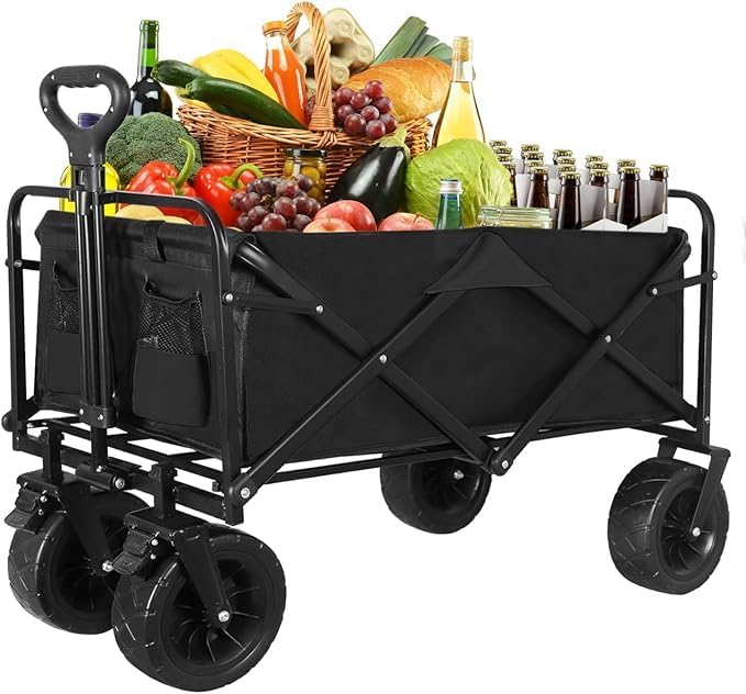 Foldable Shopping Trolley Cart with Wheels and Removable Bag BLACK 34.00