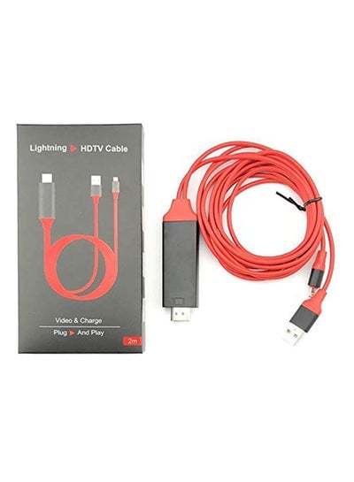 محول كابل تلفزيون Lightning إلى HDMI HDTV AV بدقة 1080P لهواتف Apple iPhone 7/6/6s Plus/5s/iPad Air/iPad Mini أحمر/أسودDhs. 37.95