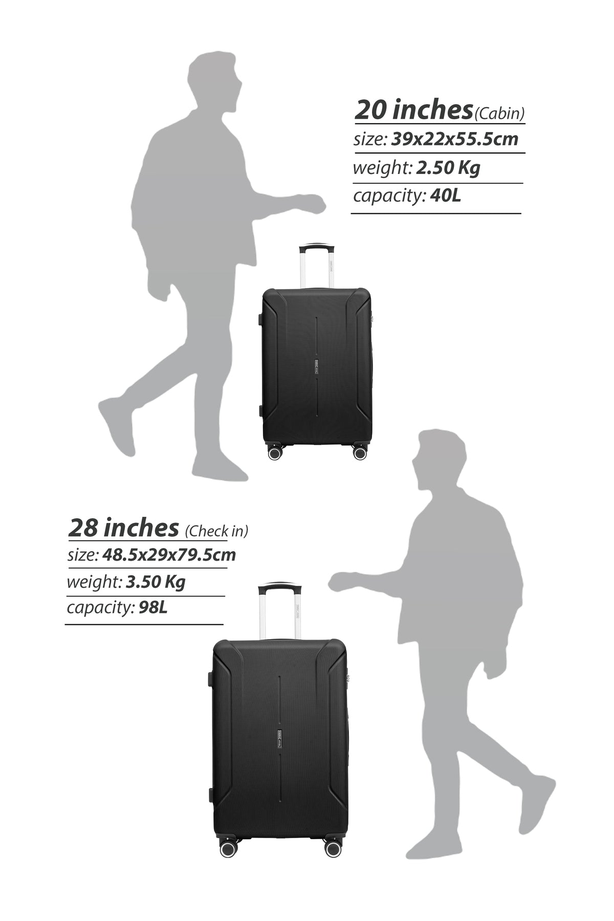 Hardside Travel Trolley Luggage 2 Pcs Set-BLACK