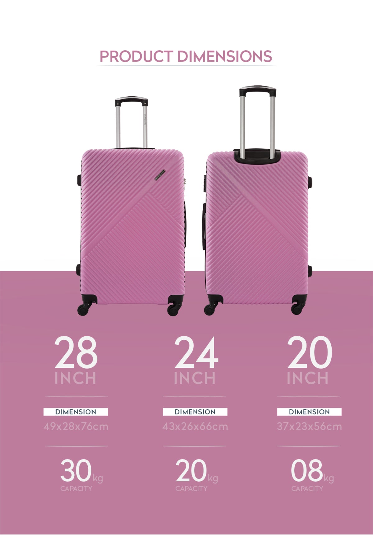 Aura 3-Pc ABS Luggage Set – Small 10kg, Medium 20kg, Large 30kg with Lock & Spinner Wheels PinkDhs. 369.00