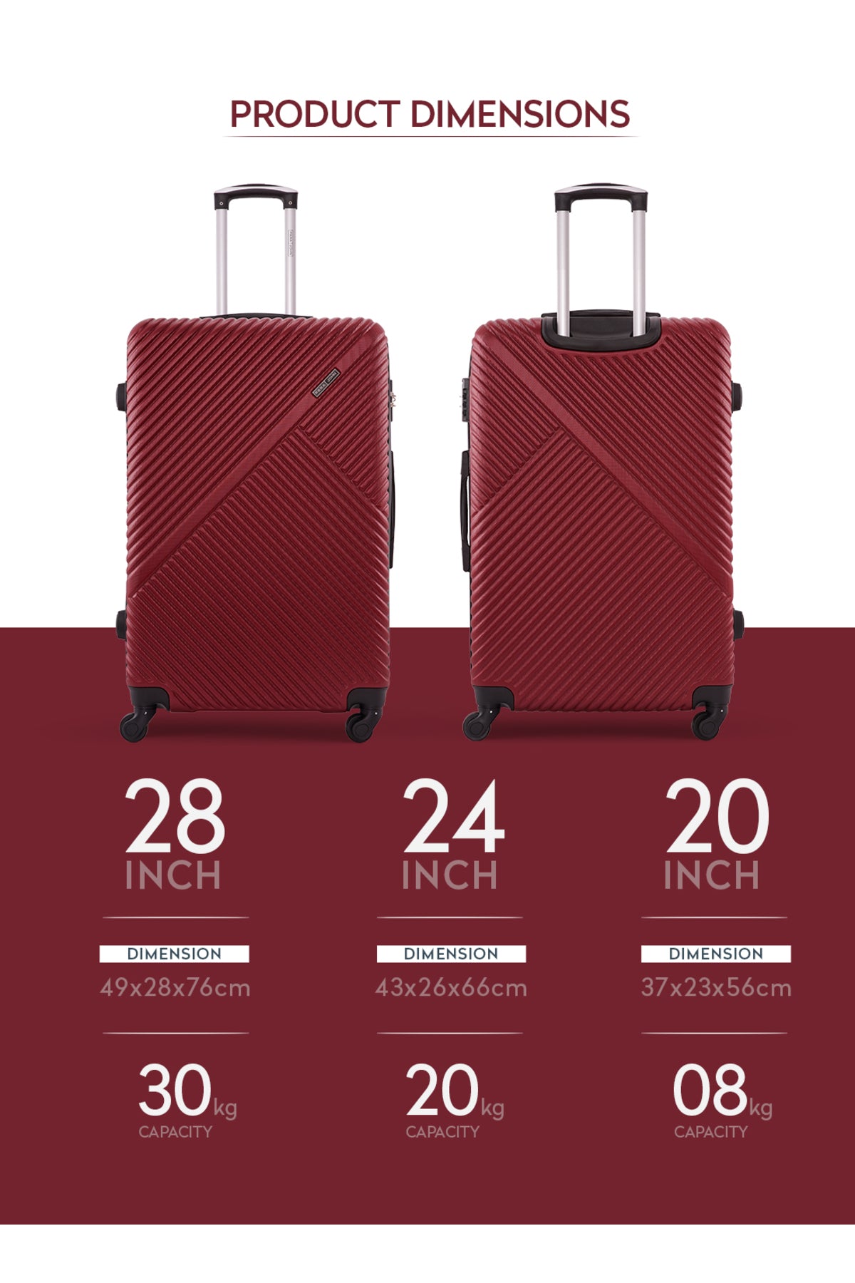 Aura 3-Pc ABS Luggage Set – Small 10kg, Medium 20kg, Large 30kg with Lock & Spinner Wheels BurgundyDhs. 369.00