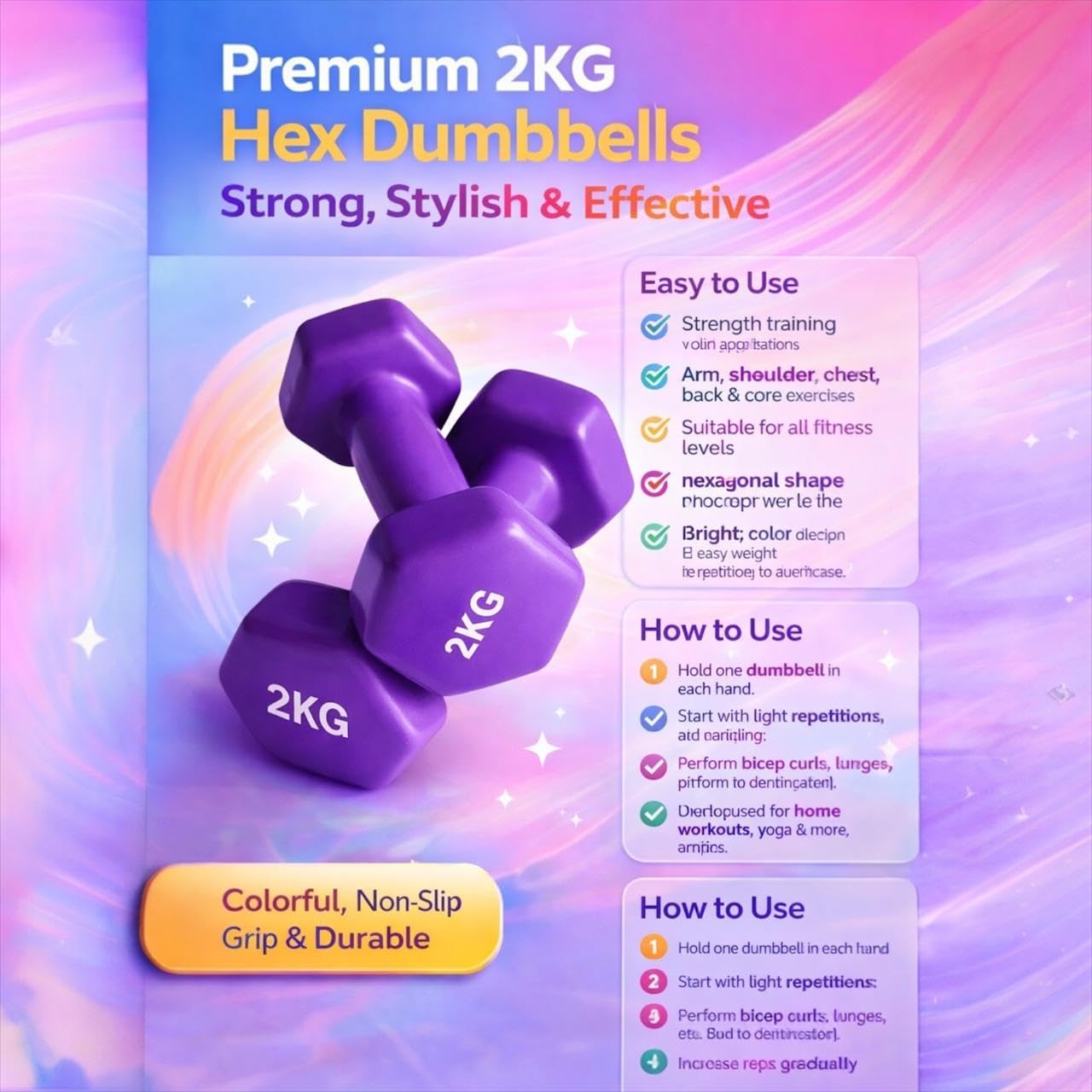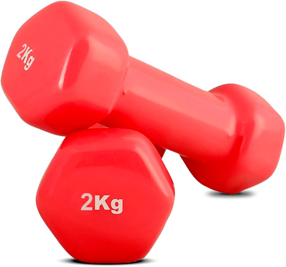 2KG Vinyl Coated Dumbbells Pair for Home Gym – Non-Slip Hex Weight Set for Strength Training, Toning & Fitness Workouts[2kg each] 65.00