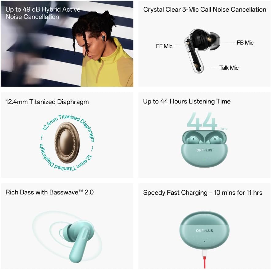 OnePlus Buds 3, Splendid Blue, Deep Bass, ANC, Immersive Sound, Up to 44 Hour Playtime with Charging case, Bluetooth 5.3Dhs. 238.00Dhs. 299.00