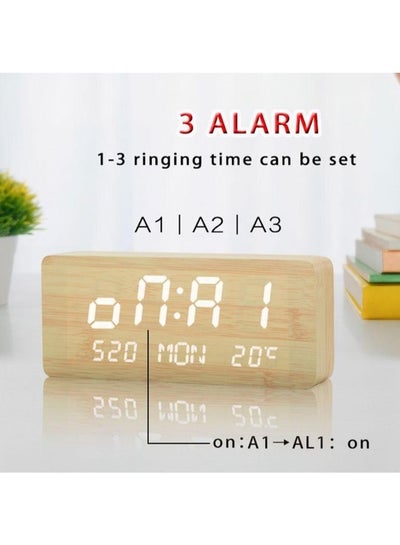 ساعة منبه LED خشبية متعددة الوظائف مع عرض التاريخ والوقتDhs. 56.89Dhs. 69.00