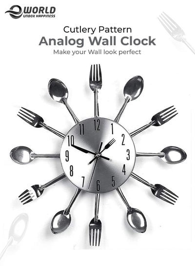 ساعة حائط تناظرية بنمط أدوات المائدة من الفولاذ المقاوم للصدأ لديكور المنزل والمطبخDhs. 41.00Dhs. 44.00