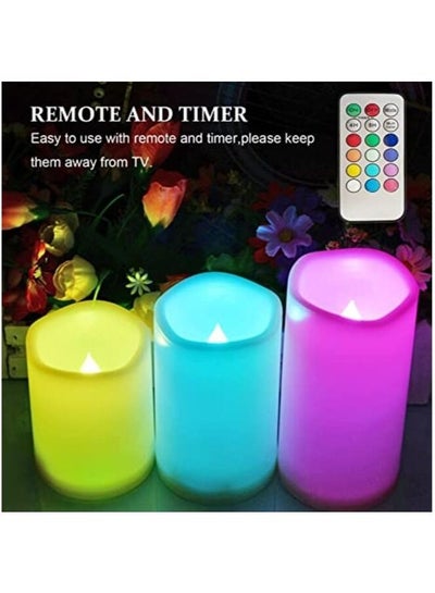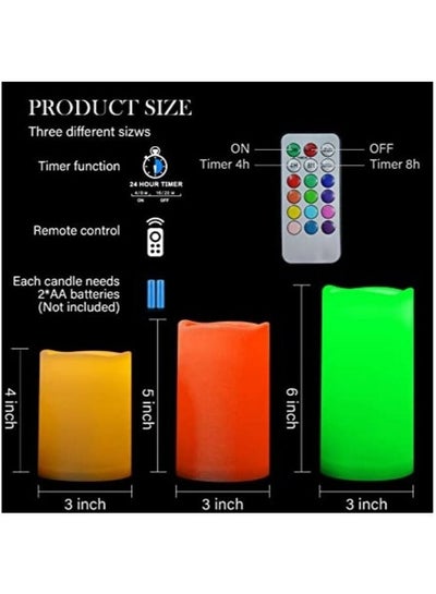 مجموعة من 3 شموع عمودية LED متغيرة الألوان مع جهاز تحكم عن بعد ومؤقت - 3x4 3x5 3x6 شموع عديمة اللهب مقاومة للماء للاستخدام الخارجي تعمل بالبطارية.Dhs. 39.27Dhs. 45.00