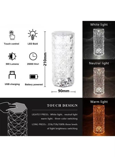 مصباح طاولة كريستالي ماسي، مصباح لمس متغير USB رومانسي مصابيح طاولة ماسية وردية، أضواء إبداعية تعمل باللمس عن بعد لغرفة النوم وغرفة المعيشة وحفلات العشاء - أبيضDhs. 39.27Dhs. 45.00