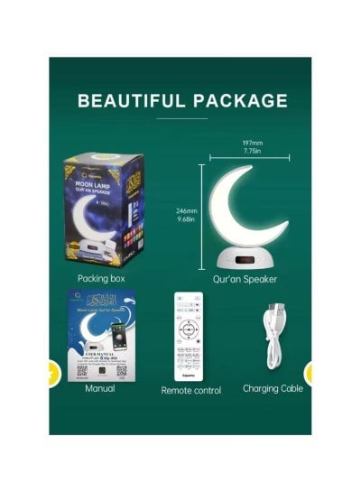 مكبر صوت القرآن الكريم بمصباح القمر من إكوانتو SQ902، يتضمن جهاز تحكم عن بعد وكابل شحنDhs. 115.85Dhs. 123.00