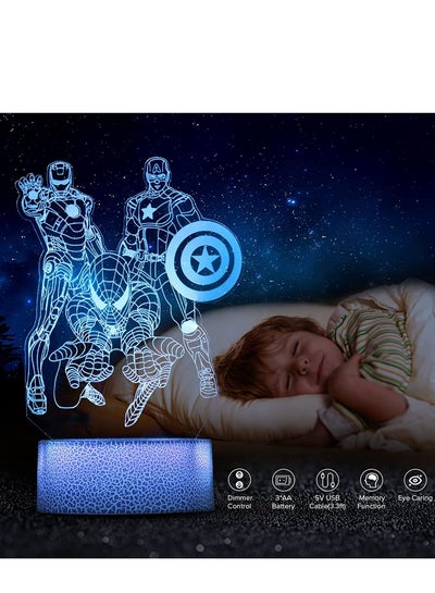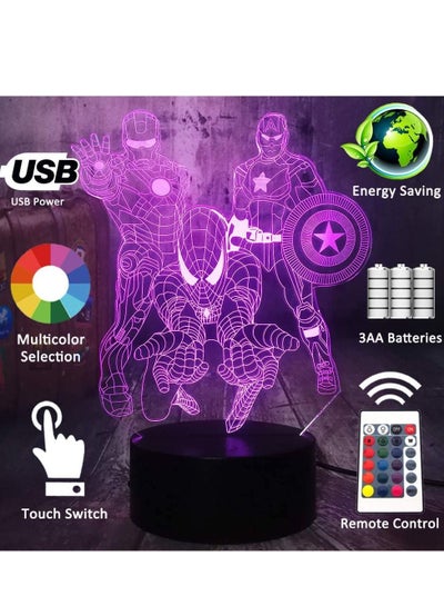 سبايدرمان ألعاب ضوء الليل للأطفال 3D الوهم مصباح التحكم باللمس الألوان الديناميكية تغيير ألعاب الأطفال لكابتن أمريكا الرجل الحديدي الهدايا للرجال الأولاد خارقةDhs. 48.21Dhs. 50.00