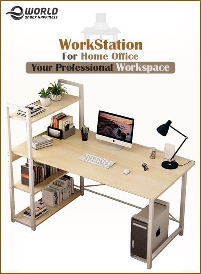 محطة عمل احترافية مع أرفف كتب كبيرة لطاولة الكمبيوتر المحمول للتخزين وتنظيم مساحة عمل قوية للمكتب المنزليDhs. 143.13Dhs. 199.00