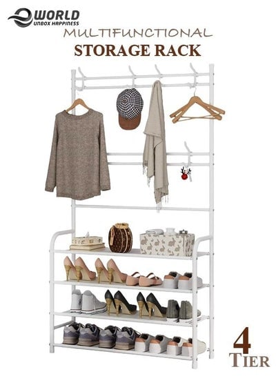 4 طبقات من أثاث مدخل المنزل، رف متعدد الأغراض للأحذية والمعاطف، منظم تخزين الملابس، خطافات متعددة لتعليق الحقائب والقمصان و4 أرففDhs. 62.05Dhs. 85.00