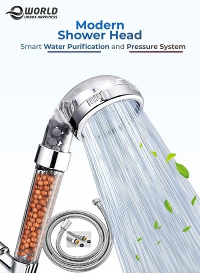 رأس دش عالي الضغط 3 أوضاع، فلتر رش محمول باليد بوظيفة أيونية لتساقط الشعر والمياه النظيفة.Dhs. 19.04Dhs. 25.00