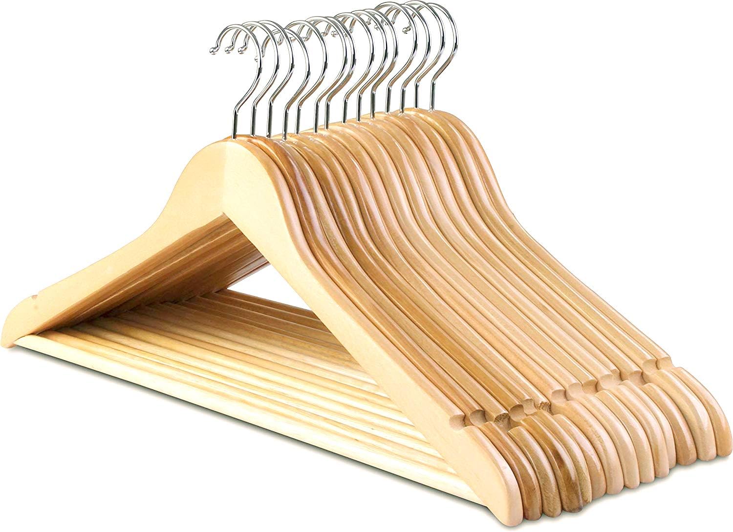 Wooden Pants Hangers with 2-Adjustable Clips, Solid Wood Pants Hangers, 360°Swivel Anti Rust Hook (10pcs) 70.00