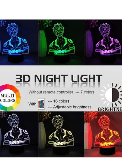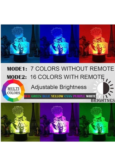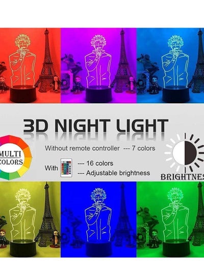 Jujutsu Kaisen 3D الوهم مصباح 16 لون Satoru Gojo Jujutsu Kaisen LED ضوء الليل Yuji Itadori تغيير الألوان مصباح ديكور ضوء الليل 16 لون الإضاءة