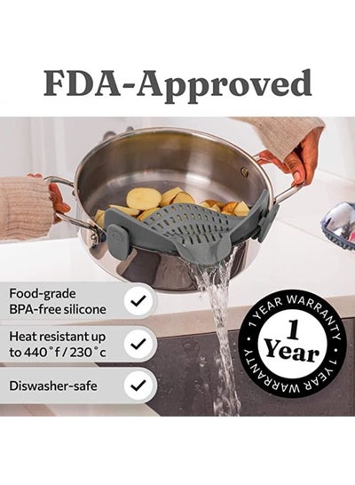 مصفاة وعاء ومصفاة معكرونة من سناب آند سترين - مصفاة بمشبك سيليكون قابل للتعديل للأواني والمقالي والأطباق - رماديDhs. 33.72Dhs. 55.95