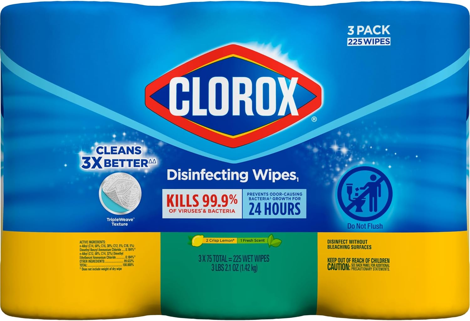Clorox Disinfecting Wipes, Bleach Free Cleaning Wipes, Fresh Scent, Moisture Seal Lid, 75 Wipes, Pack of 3 (New Packaging)Dhs. 300.00