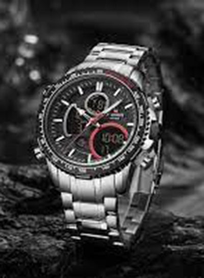 ساعة يد رجالية من الستانلس ستيل، أنالوج ورقمية، NF9182 S/B - 46 ملم - فضيDhs. 107.65Dhs. 225.00