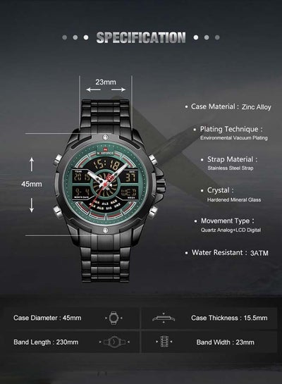 ساعة يد رجالية من الستانلس ستيل، أنالوج ورقمية، NF9170 B/GN - 45 ملم - أسودDhs. 107.65Dhs. 225.00