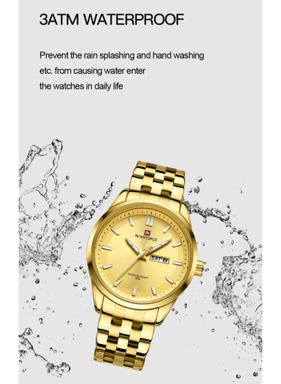 ساعة يد رجالية مقاومة للماء بعقارب NF9161 - 45 ملم - ذهبيDhs. 82.11Dhs. 95.00