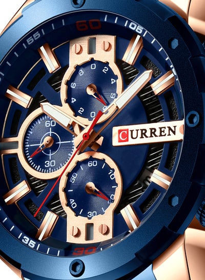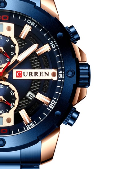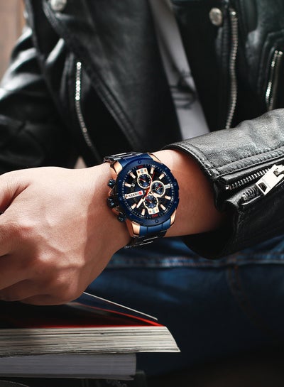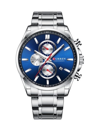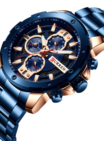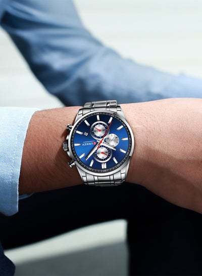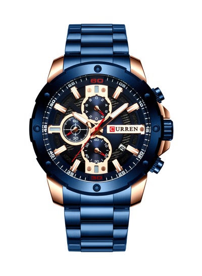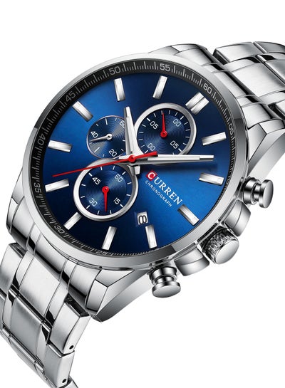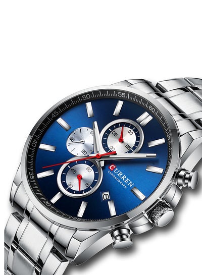 ساعة كرونوغراف للرجال مقاومة للماء وبسوار ستانلس ستيل وكوارتز كاجوال 8336 - 49 ملم - أزرق