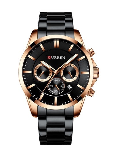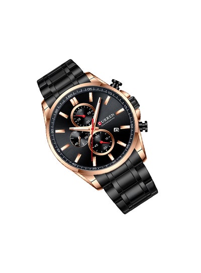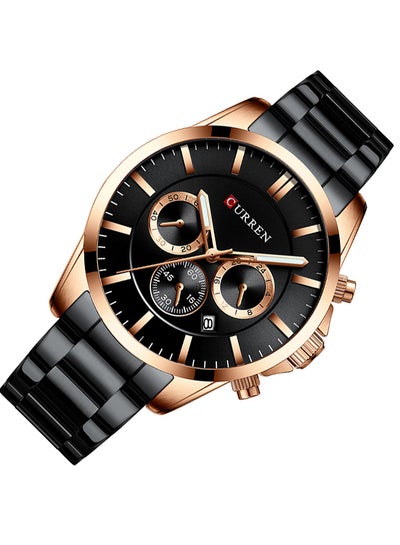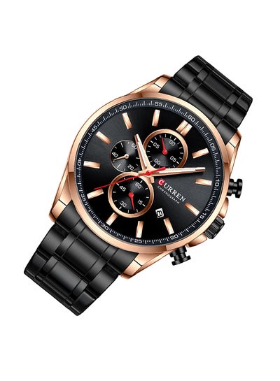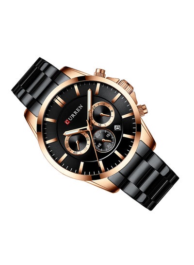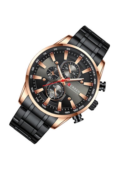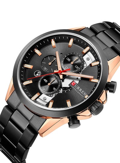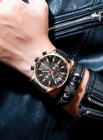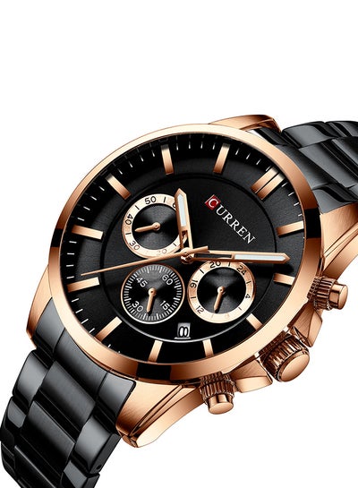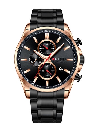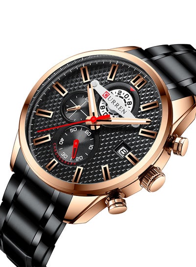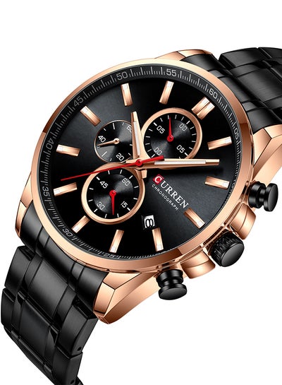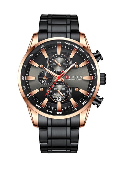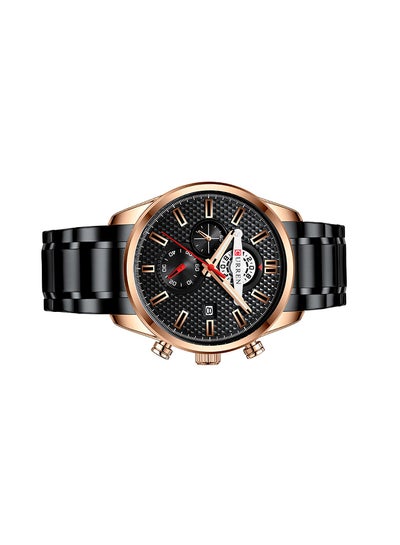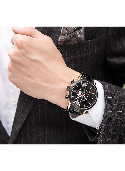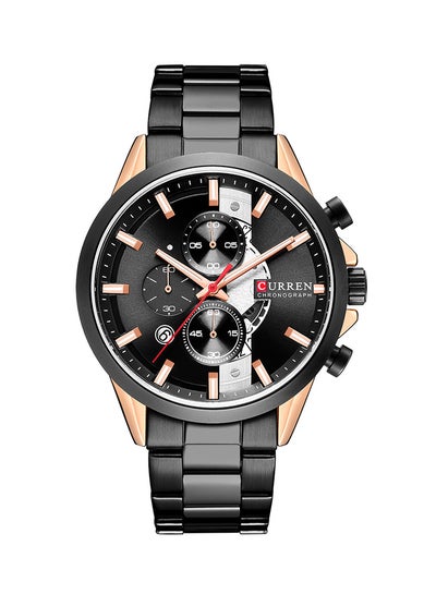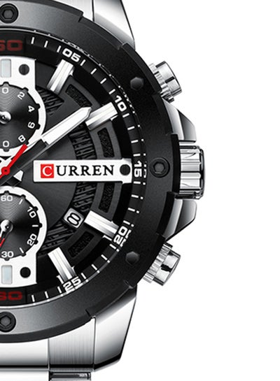 ساعة كرونوغراف للرجال مقاومة للماء وبسوار ستانلس ستيل وكوارتز كاجوال 8336 - 49 ملم - أسود