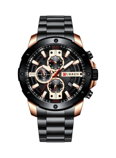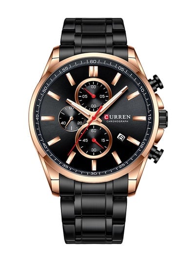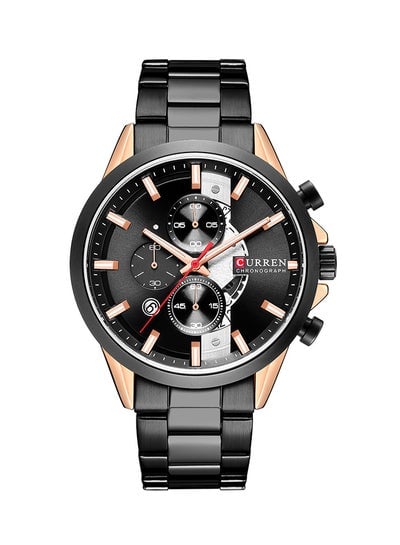 ساعة كرونوغراف للرجال مقاومة للماء وبسوار ستانلس ستيل وكوارتز كاجوال 8325 - 46 ملم - أسود