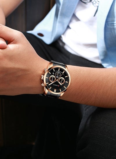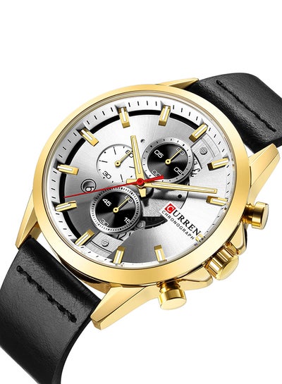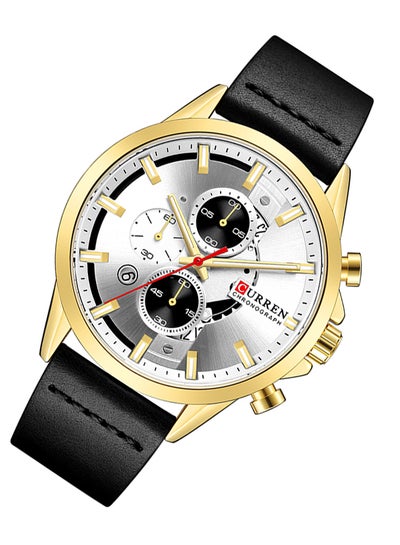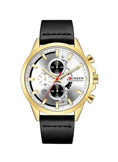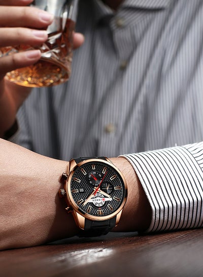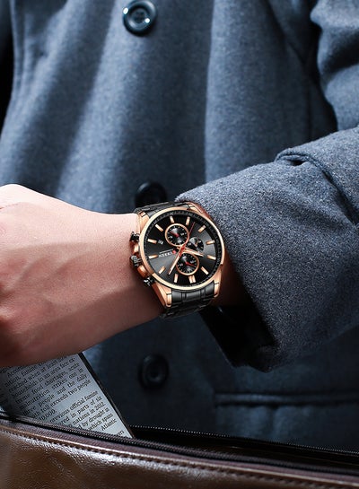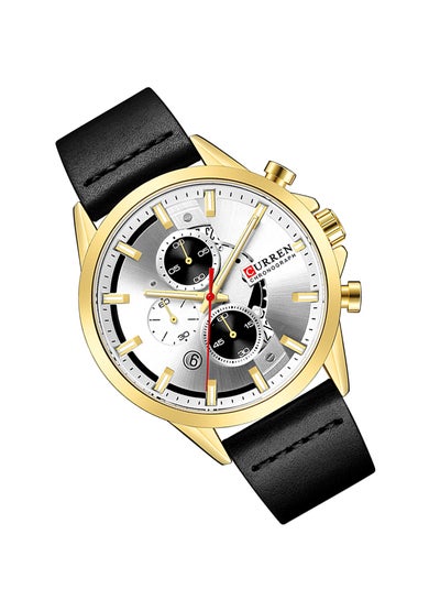 ساعة كرونوغراف للرجال مقاومة للماء وبسوار جلدي أصلي وكوارتز كاجوال 8325 - 46 ملم - أسود