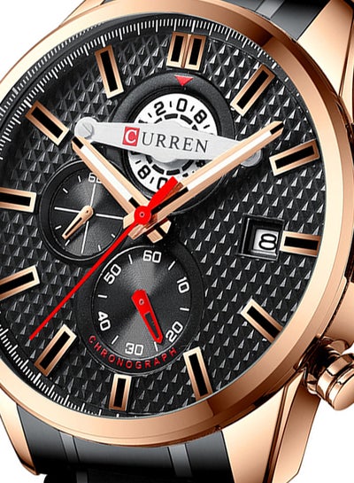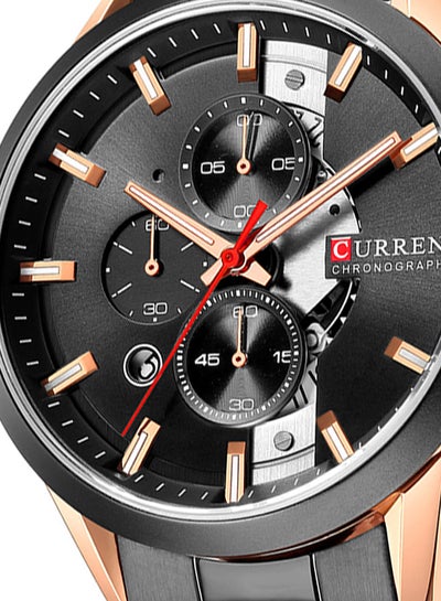 ساعة كرونوغراف للرجال مقاومة للماء وبسوار ستانلس ستيل وكوارتز كاجوال 8351 - 47 ملم - أسود