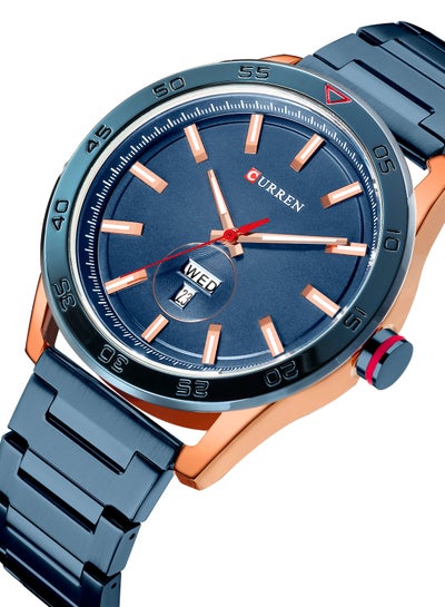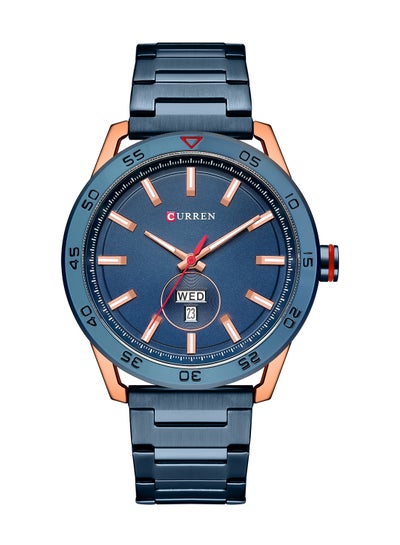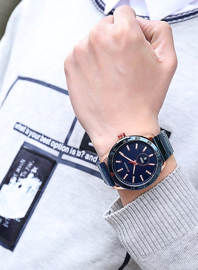 ساعة رجالية مقاومة للماء وسوار من الستانلس ستيل وسوار كوارتز كاجوال 8331 - 44 ملم - أزرق للرجال
