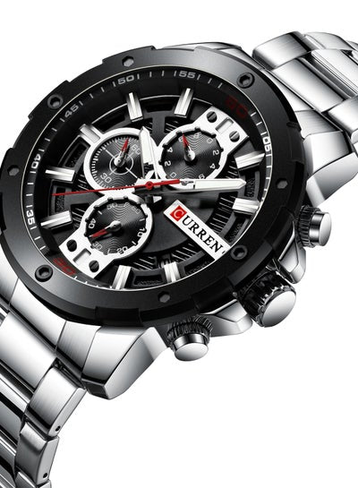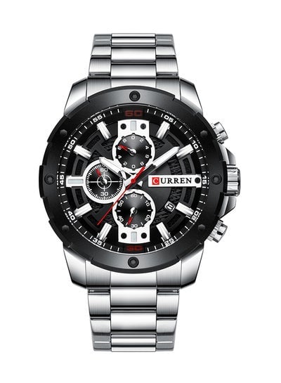 ساعة كرونوغراف للرجال مقاومة للماء وبسوار ستانلس ستيل وكوارتز كاجوال 8336 - 49 ملم - فضي