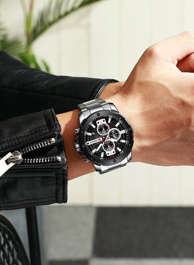 ساعة كرونوغراف للرجال مقاومة للماء وبسوار ستانلس ستيل وكوارتز كاجوال 8358 - 47 ملم - أسود