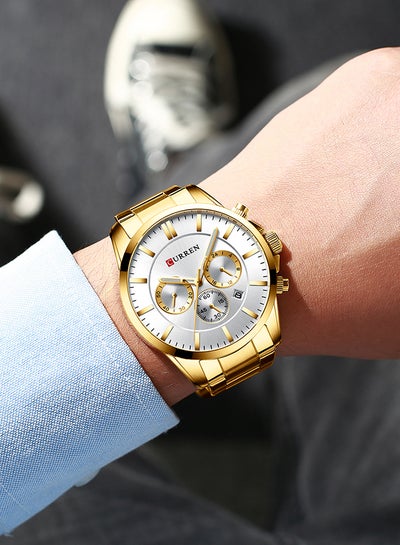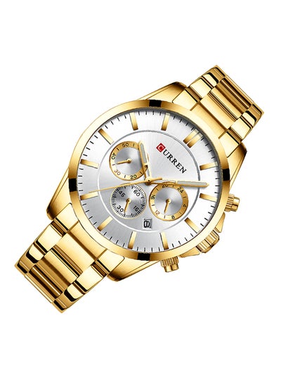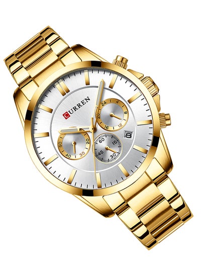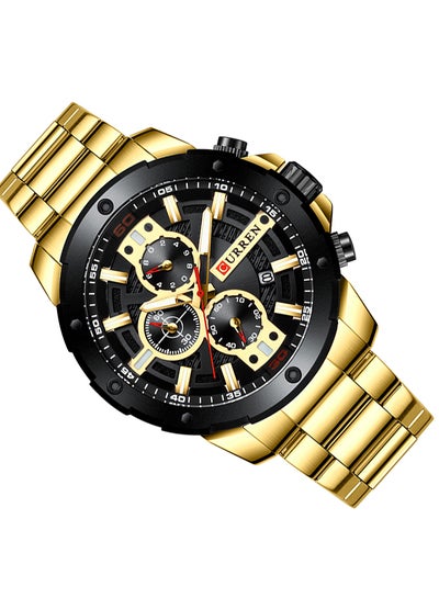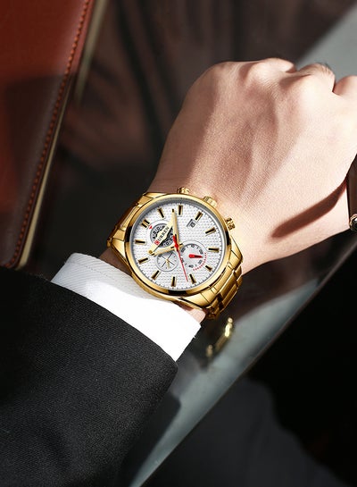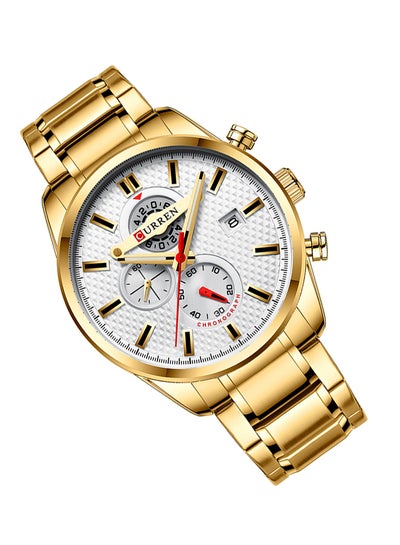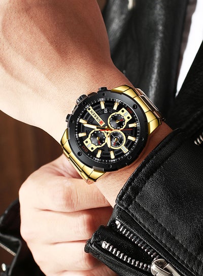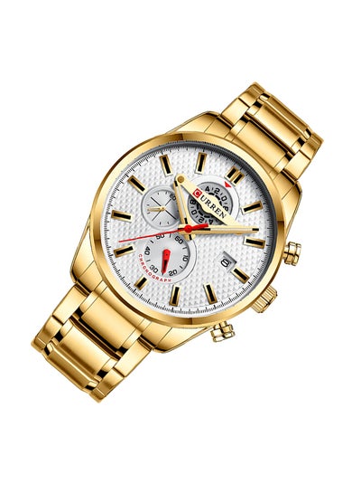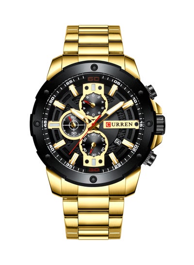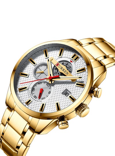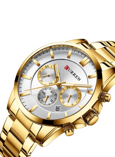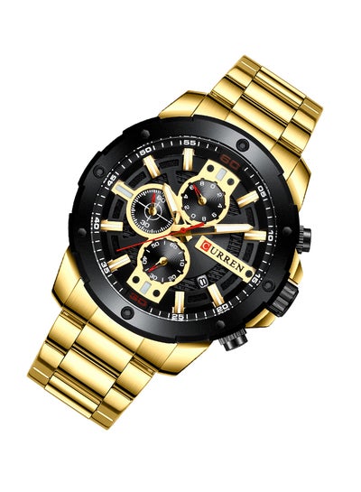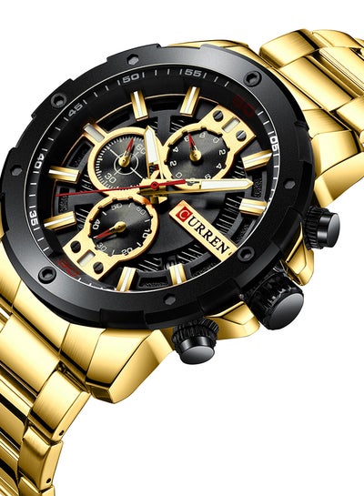 ساعة كرونوغراف للرجال مقاومة للماء وبسوار ستانلس ستيل وكوارتز كاجوال 8336 - 49 ملم - ذهبي