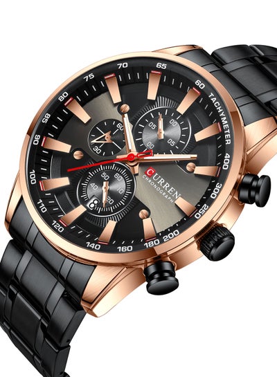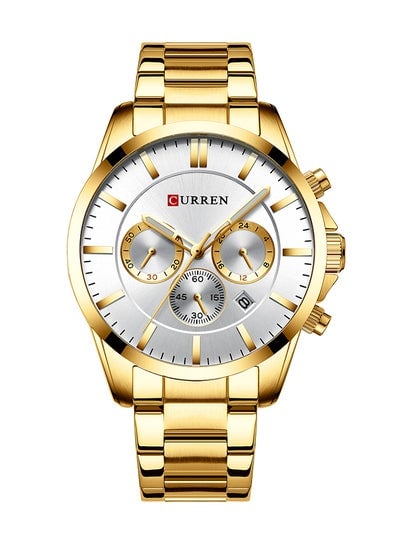 ساعة كرونوغراف للرجال مقاومة للماء وبسوار ستانلس ستيل وكوارتز كاجوال 8358 - 47 ملم - ذهبي