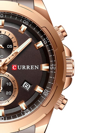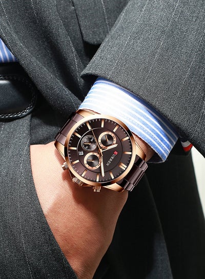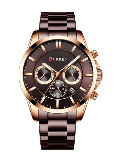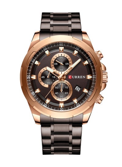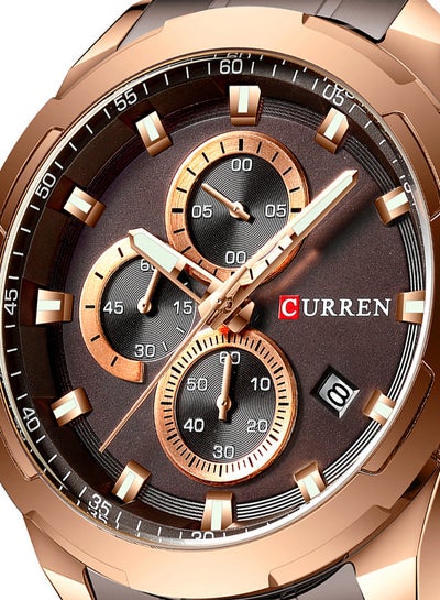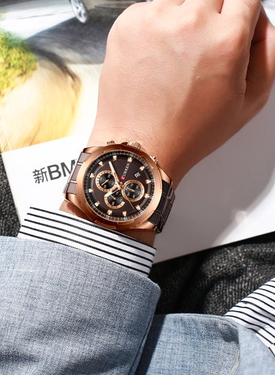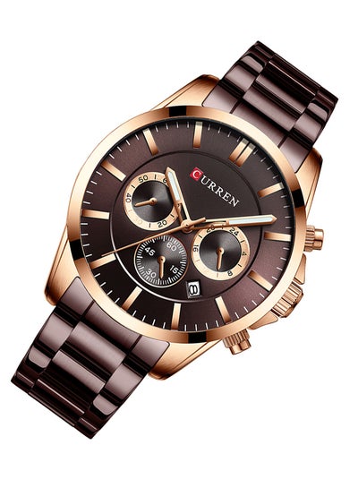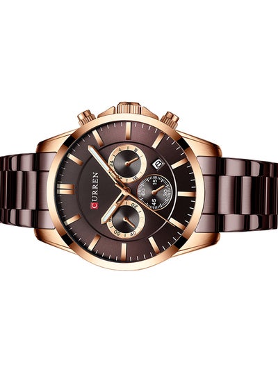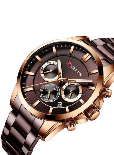 ساعة كرونوغراف للرجال مقاومة للماء وبسوار ستانلس ستيل وكوارتز كاجوال 8354 - 47 ملم - بني